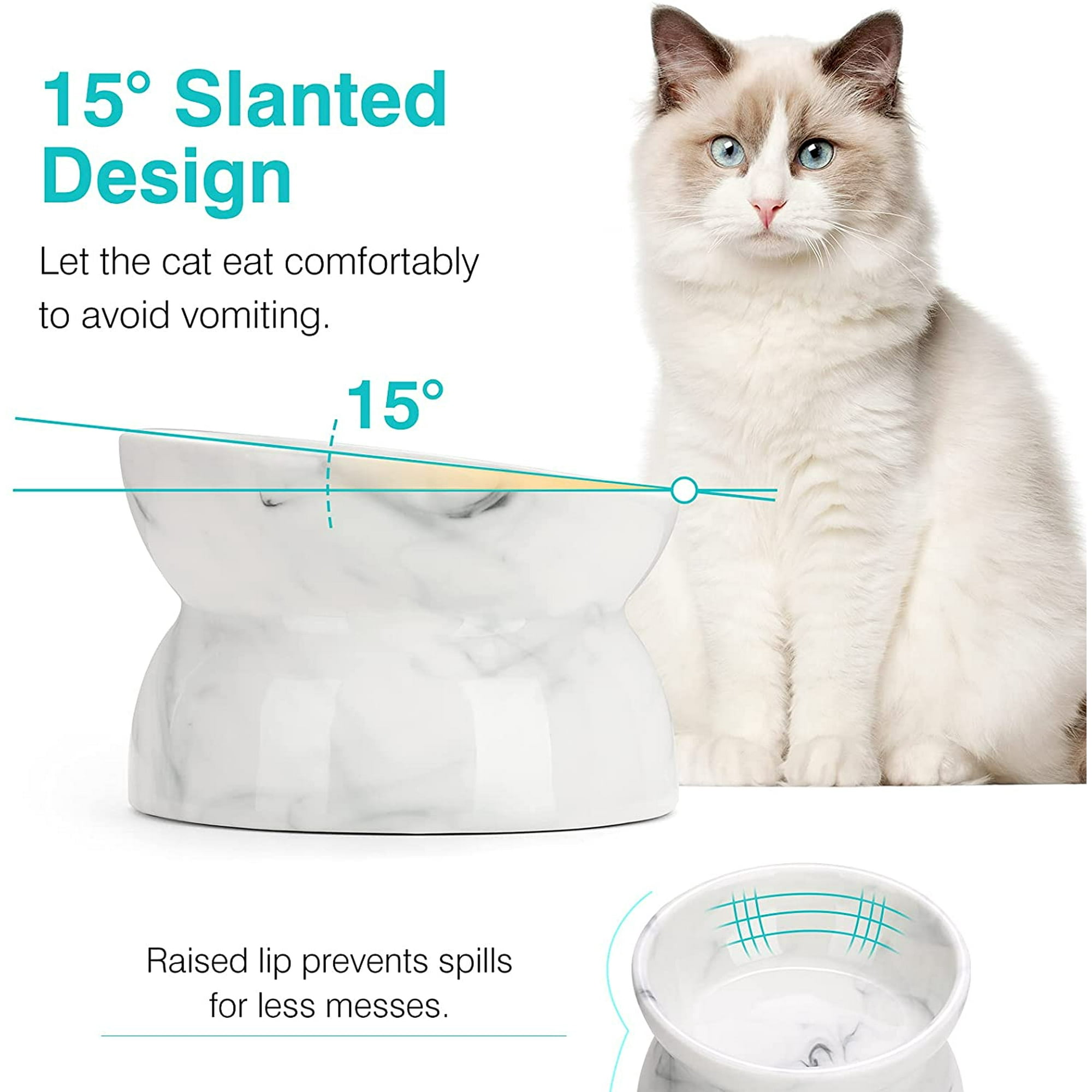 Wgthhk Raised Cat Food Wgthhk 15 Tilted Ceramic Cat Feeder Dishwasher Microwave Safe Cat Dish Backflow Prevention Protect Pet S Spine Pet Food Dish For Flat Faced Cats Marble White Walmart Canada